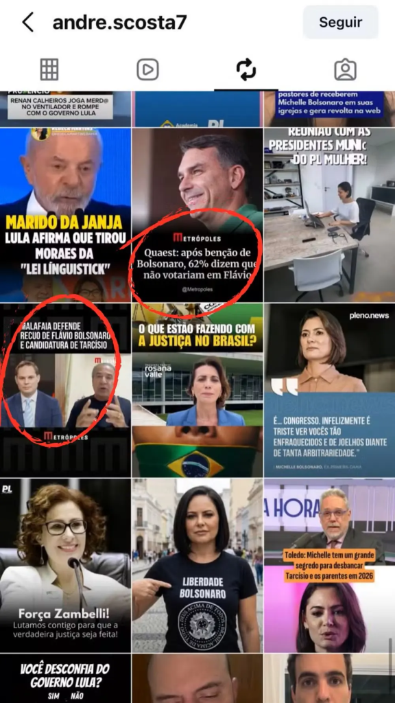 Em outra publicação amplamente compartilhada, o assessor republicou trechos de uma entrevista do pastor Silas Malafaia defendendo que Flávio recuasse da disputa e abrisse espaço para uma candidatura alternativa — como a do atual governador de São Paulo, Tarcísio de Freitas (Republicanos).